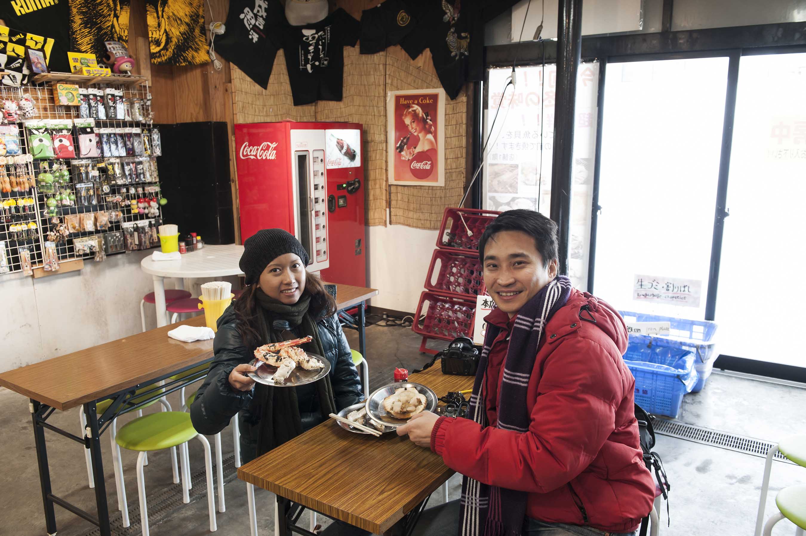 Done hot spring bath, the snowing still heavy and the visibility was quite poor. While waiting for the bus to go back Biei Station, we had coffee at nearby local cafe. The cafe was run by a local old couple, they were so friendly and sweet. Although they can’t really talk in english, but we try hard to communicate until we understand each other and it was fun!.
