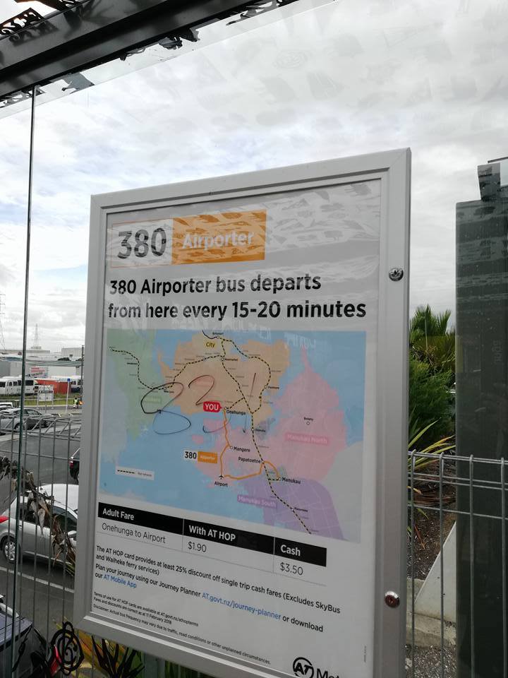 Find an Orange Bus No. 380 when you step out from the airport. Catch this bus to Onehunga train station for only NZD$3.50 per person one-way. If you’re not familiar where to alight, just tell the bus driver the station name to make sure u alight at the correct station. Unless you are on google map all the time.