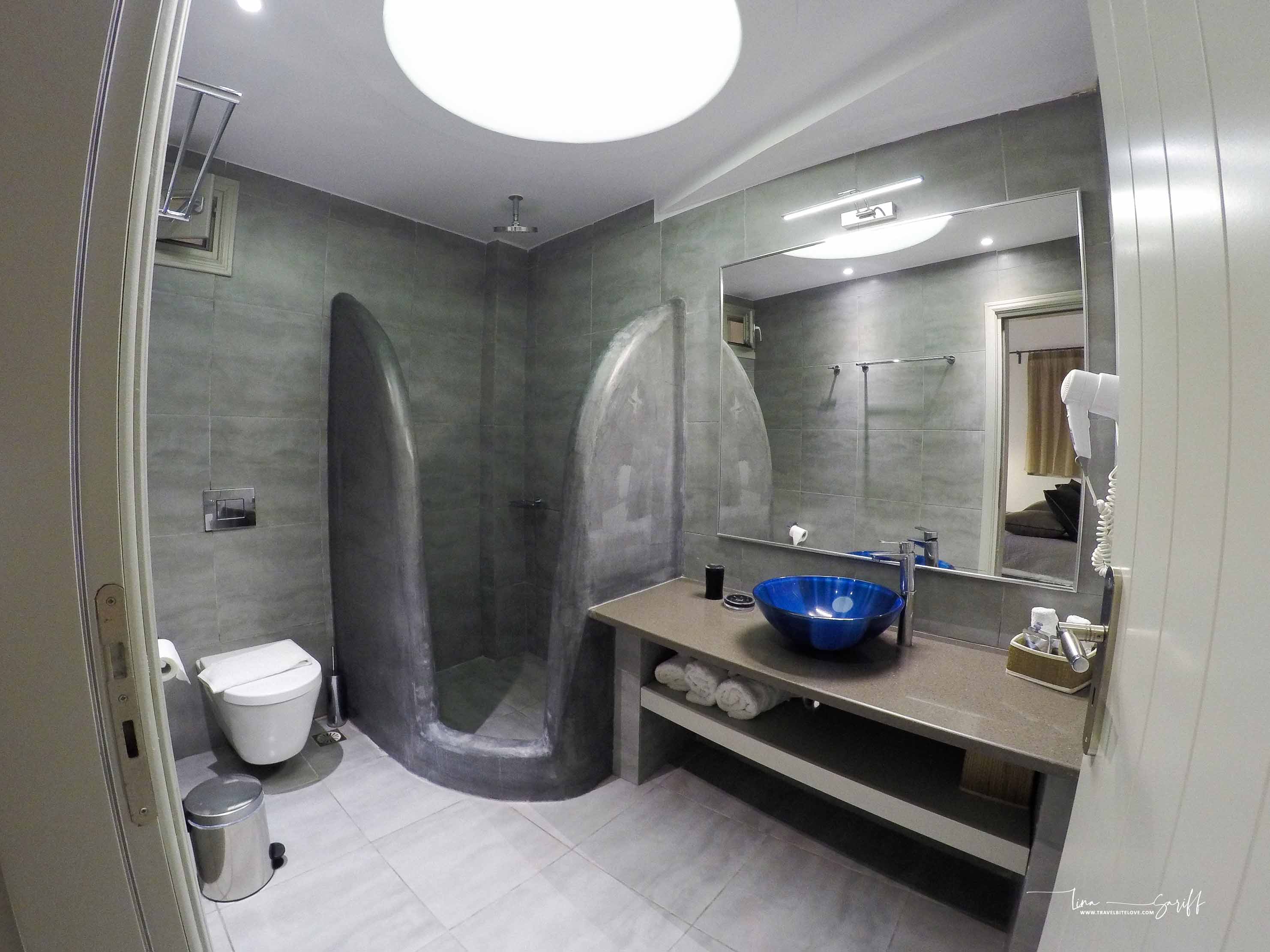 This villa located at Imerovigli, the quietest town along the caldera and has the islandโs best sunrise and sunset views. It is a perfect spot for taking pictures and it is so romantic. Having breakfast with caldera view every morning, its so awesome! The room was great, spacious and kitchen was equipped in the room. The breakfast was included in room package, every morning they give us form to fill up what we gonna have for the next day breakfast. It wasnโt as great as we hoped, limited choice of menu because we don’t eat porky but good enough for us to fill up our tummy to start our day. Overall this is an amazing location, one of the best views on the entire island. Wishing to stay here too? click here to book!