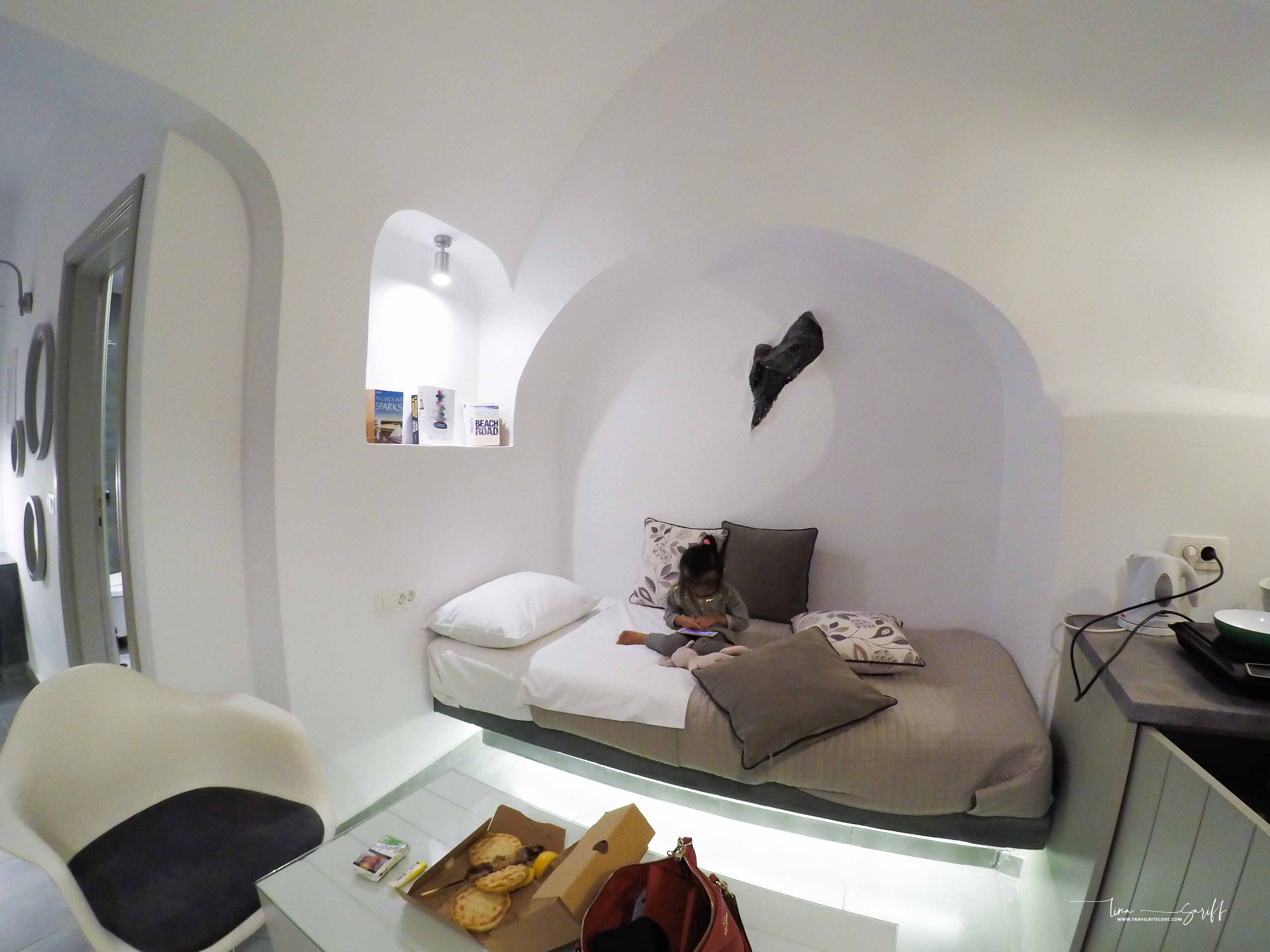 We stayed in Krokos Villas with Panoramic Caldera and Volcano views. Our Villas has private terrace on top of the villas offers a tremendous view of surrounds island. You may want to search available accommodation via Booking.com here to find great deals. Become a member and subscribe the newsletter to receive fantastic deals here.