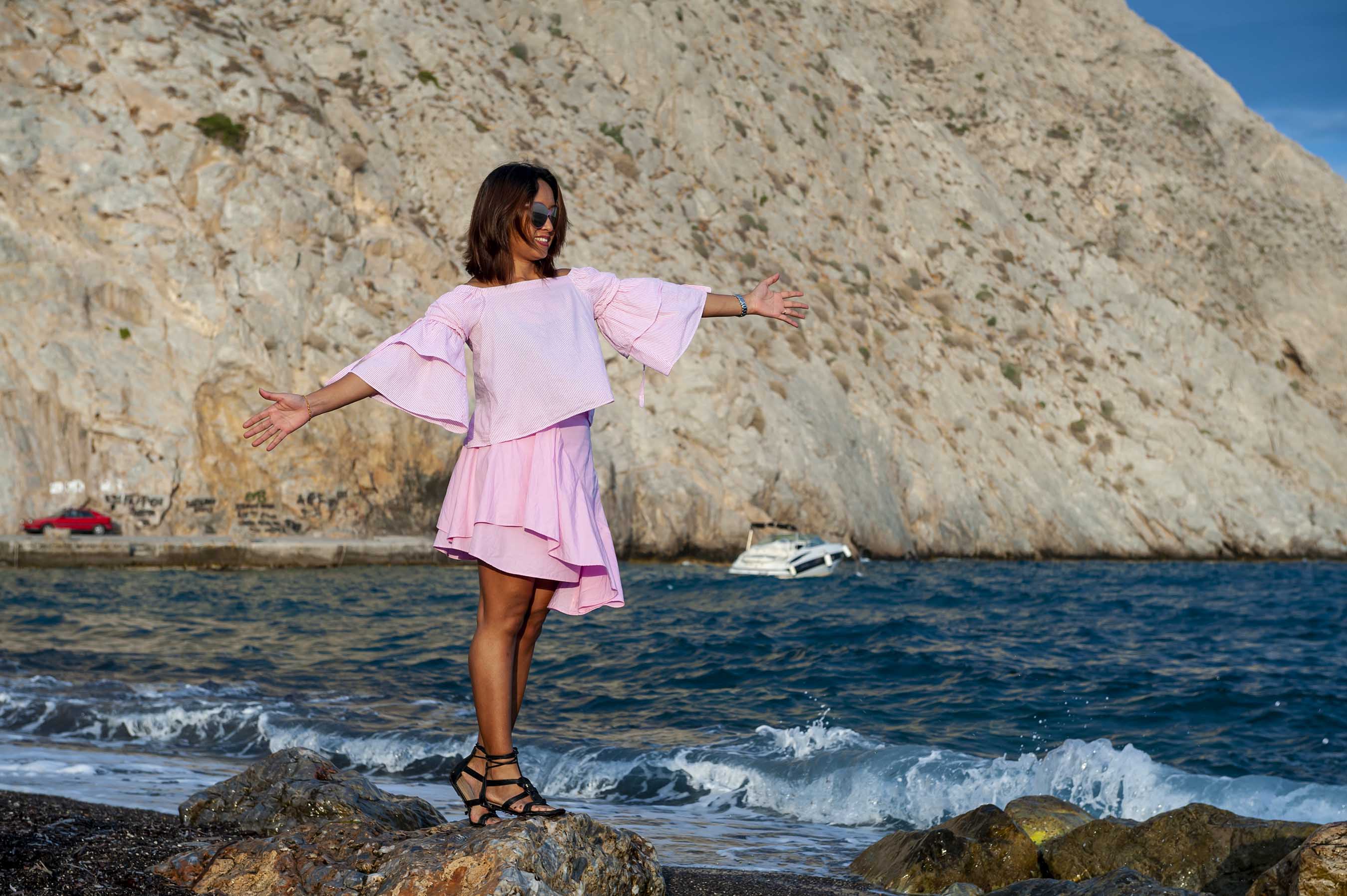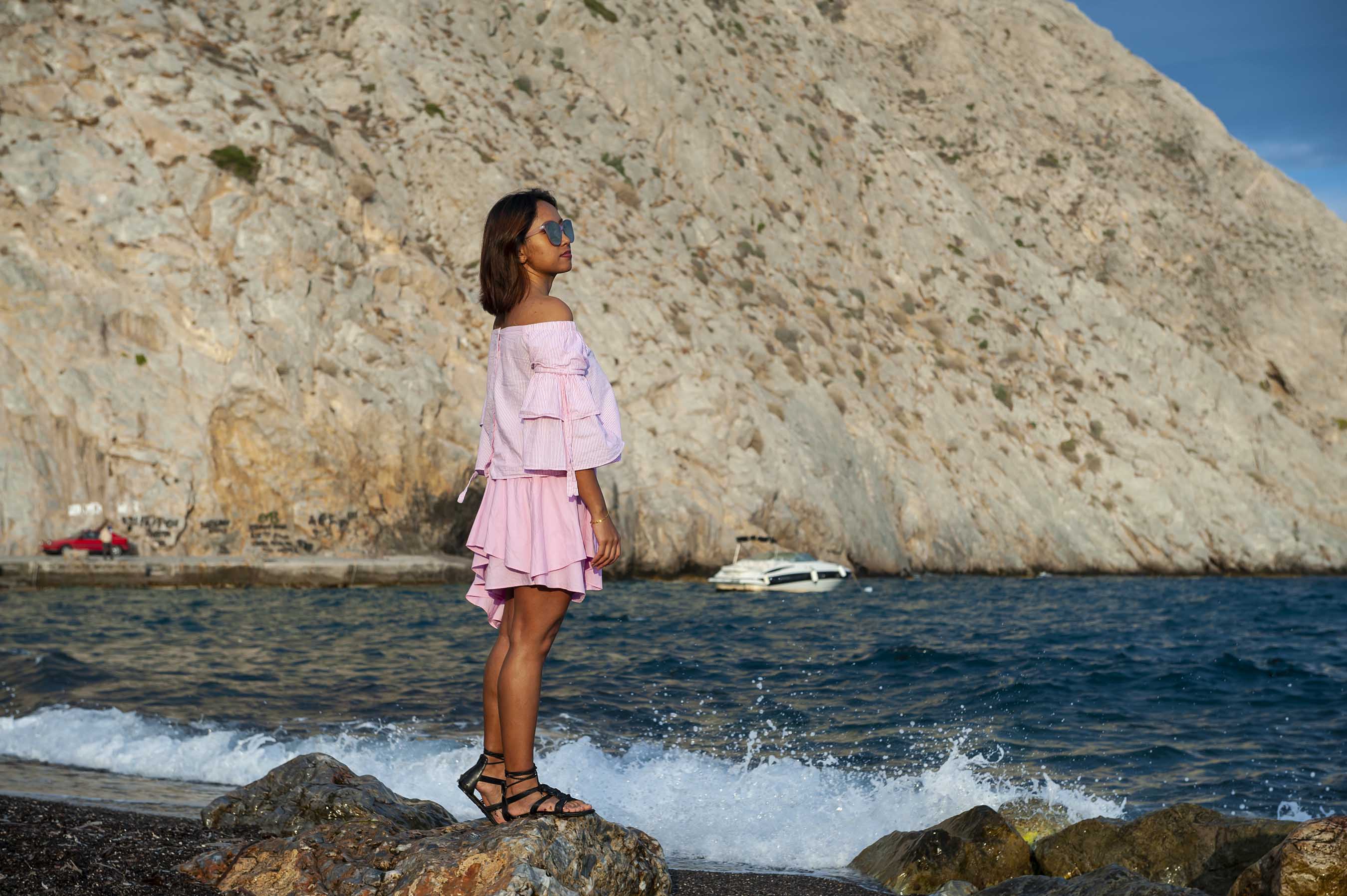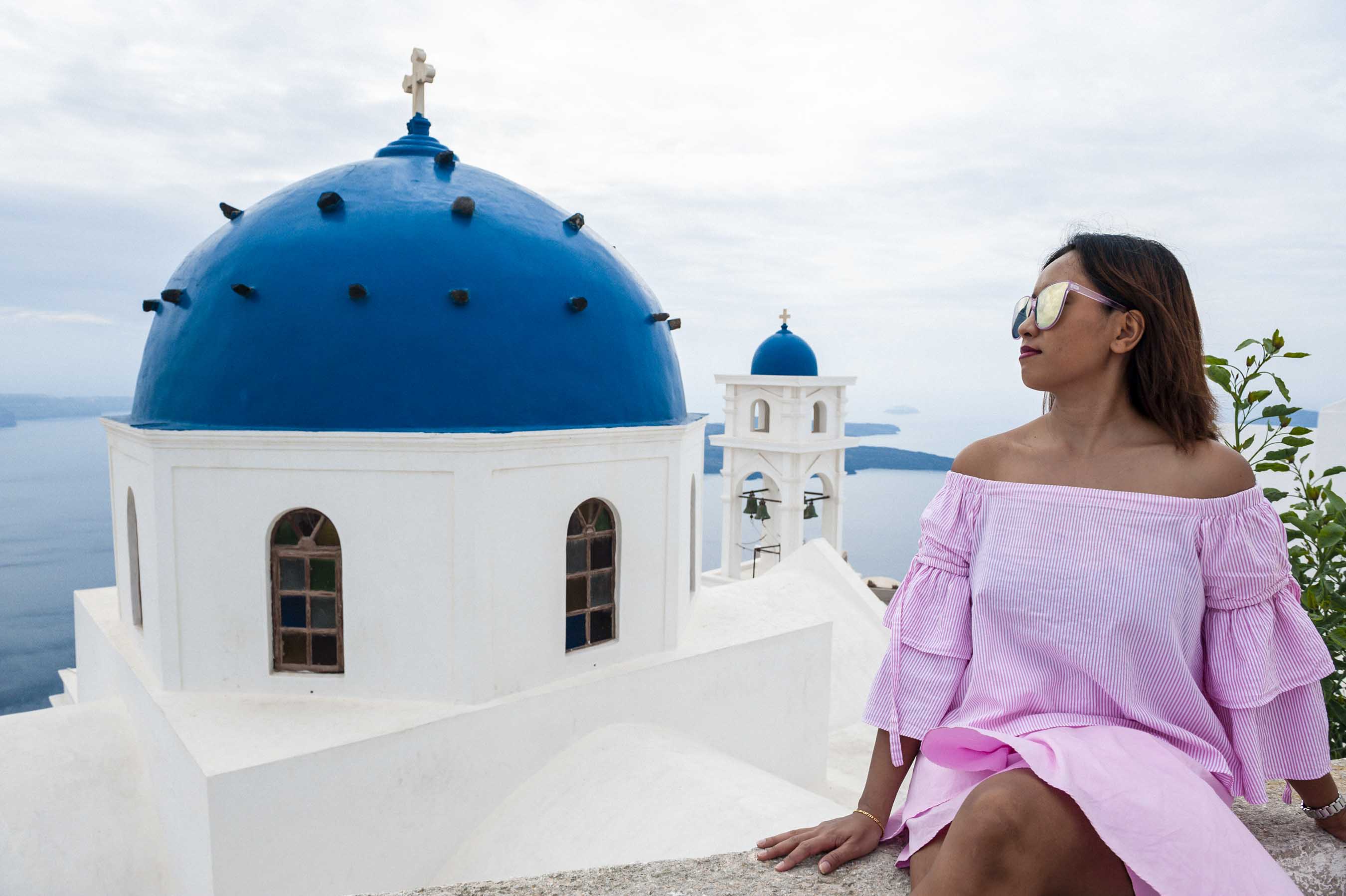 Canโt get enough of the stunning blue domes on Santorini? Then you will definitely want to stop by Imerovigli. On our last day in Santorini, we spent time taking some photographs at Imerovigli Village. Here you will find the Imerovigli Anastasi Church, the perfect place to capture the blue domes and get a few great pictures of yourself against a gorgeous backdrop. My favorite thing about this photo location is that it isnโt as crowded as Oia, so you will probably have an easier time getting a great shot! You may even have the chance to see a wedding (or at least a wedding photography shoot! Because we met one!).