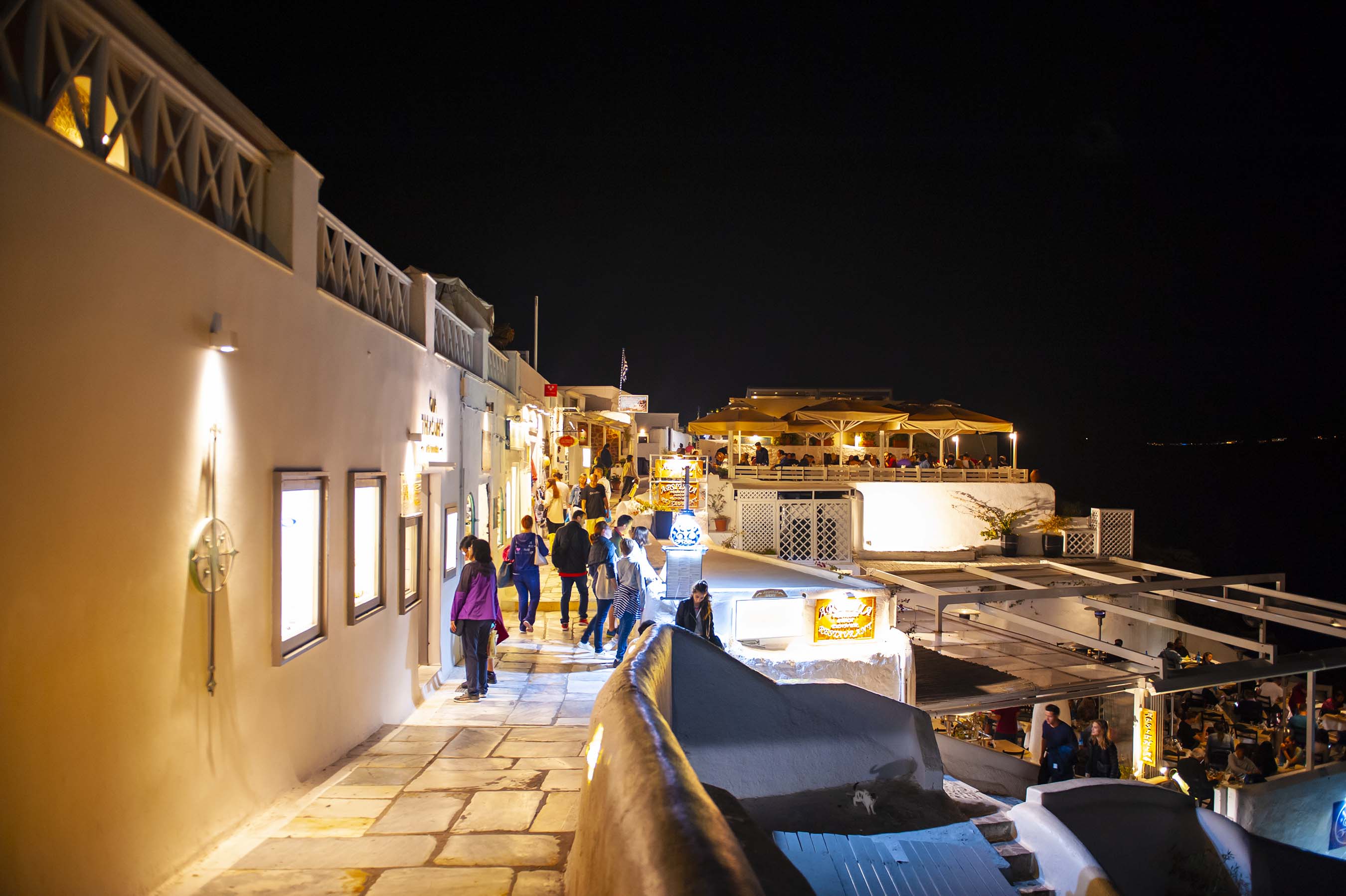 Most tourist stay in Fira because combination of natural beauty, social life, night life, and shopping, where you can feel the liveliness of the island and where all the action takes place. A walk to the scenic alleys during the daytime will fill you with harmony, while at night you can find yourself in the middle of a big party. There is a wealth of restaurants, cafes, bars and clubs where you can relax and enjoy the tremendous view of Caldera and volcano during sunset. You will love watching sunset here!.
