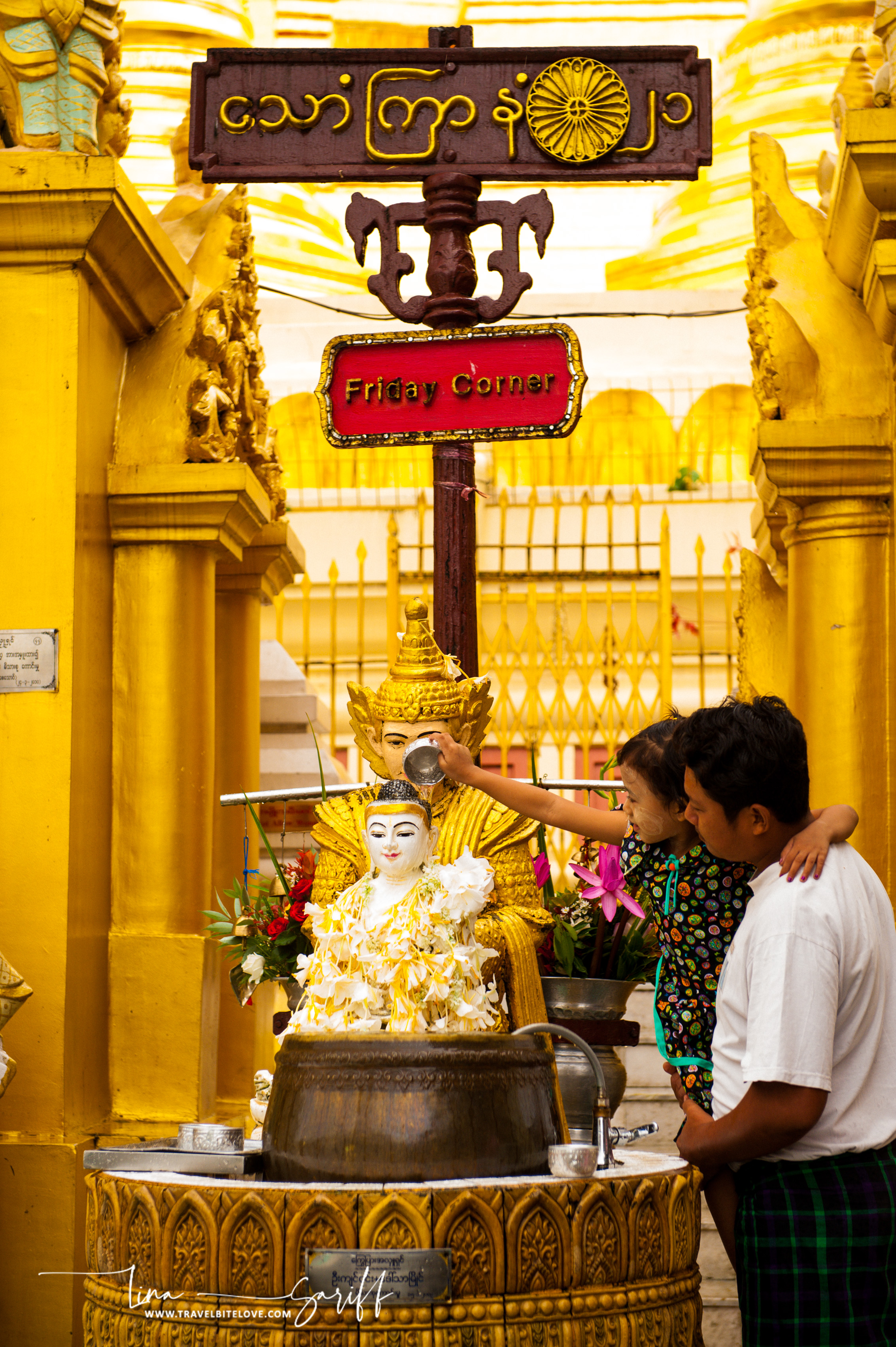 You’re required to remove your shoes at the entrance and dress modestly before entering. Longyi and htabi (long skirt) can be rented for Kyat3000. The four entrances to the pagoda have signs prohibiting short dresses, and staff will help people change to longyi and full-length dresses before entering.