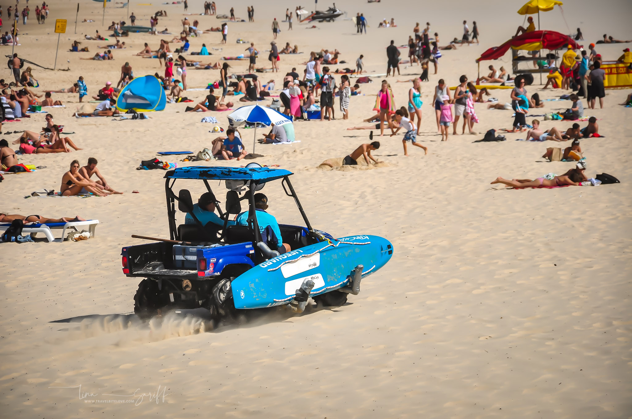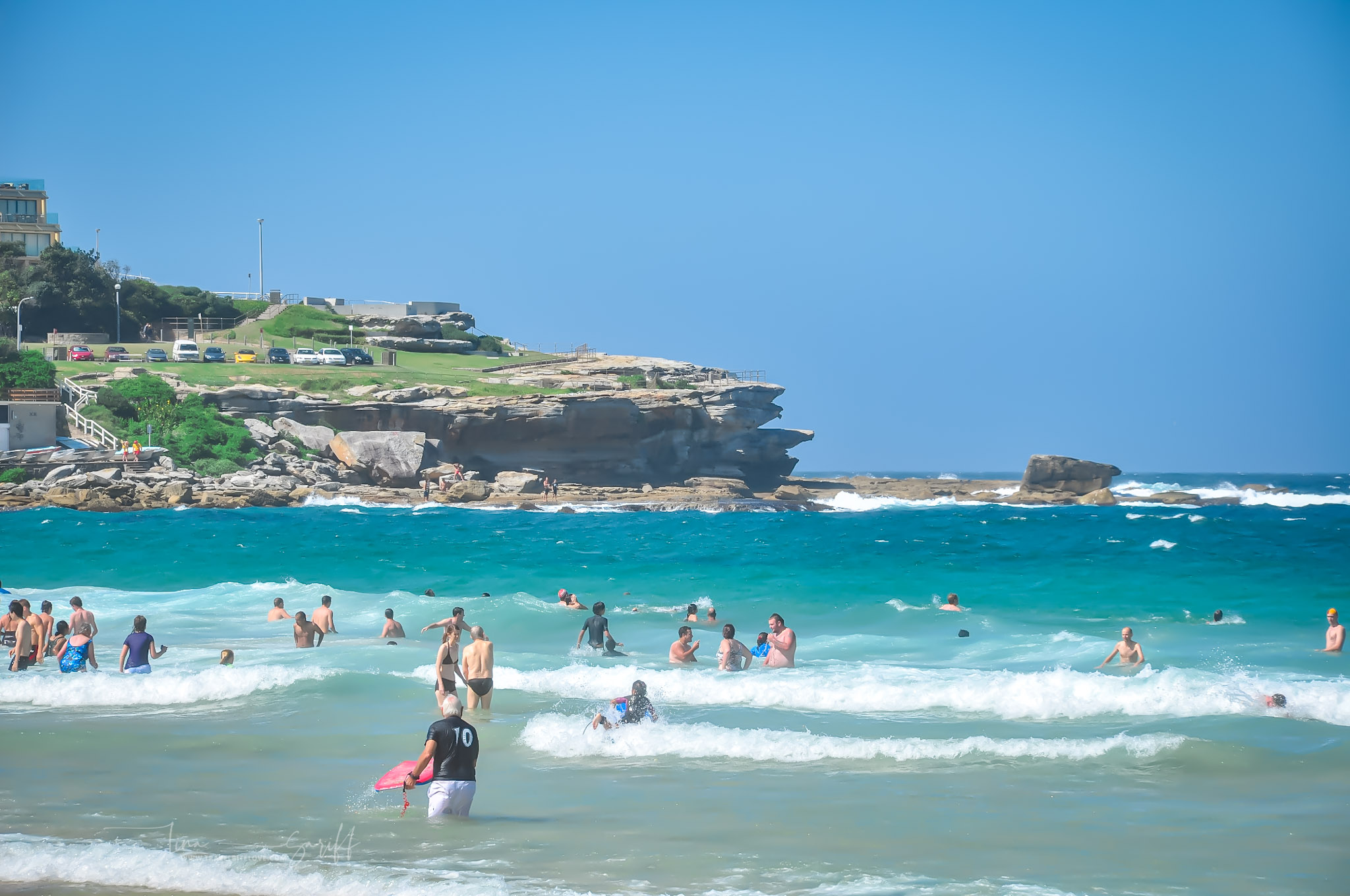 Bondi beach is a must visit whenever you are in Sydney. The sand is clean and the views are beautiful. Many locals were on and about with surfing and swimming. Lifeguards were on duty.